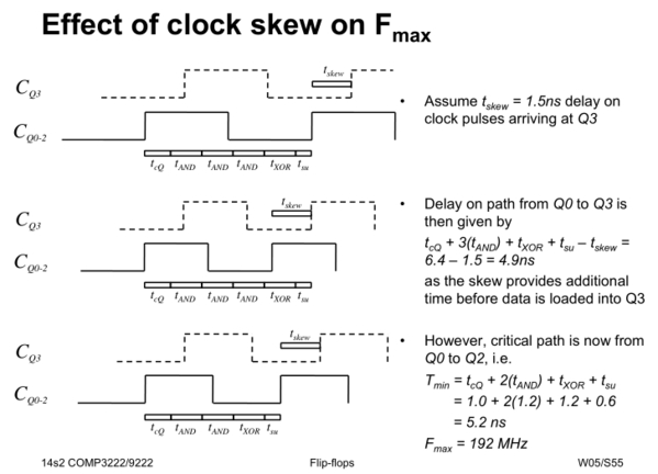 T(min) = MAX{T(p)} + T(NOT GATE) + T(su)